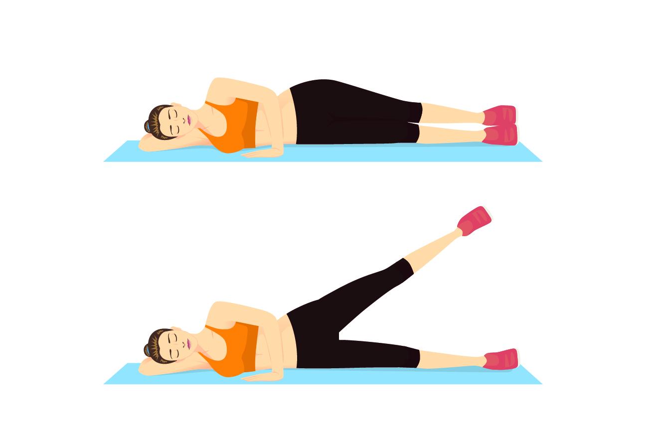 - Lie on your side with both legs straight and feet stacked on top of each other.Â